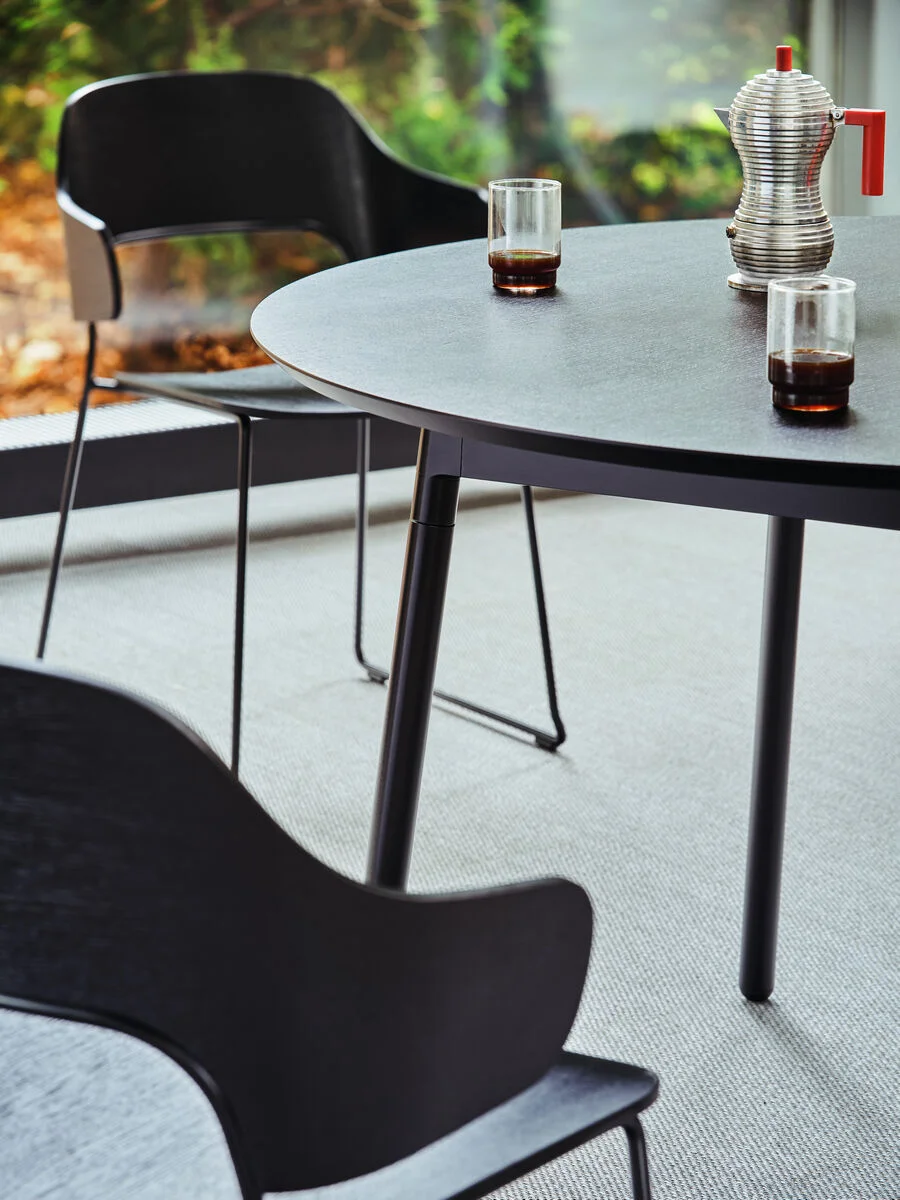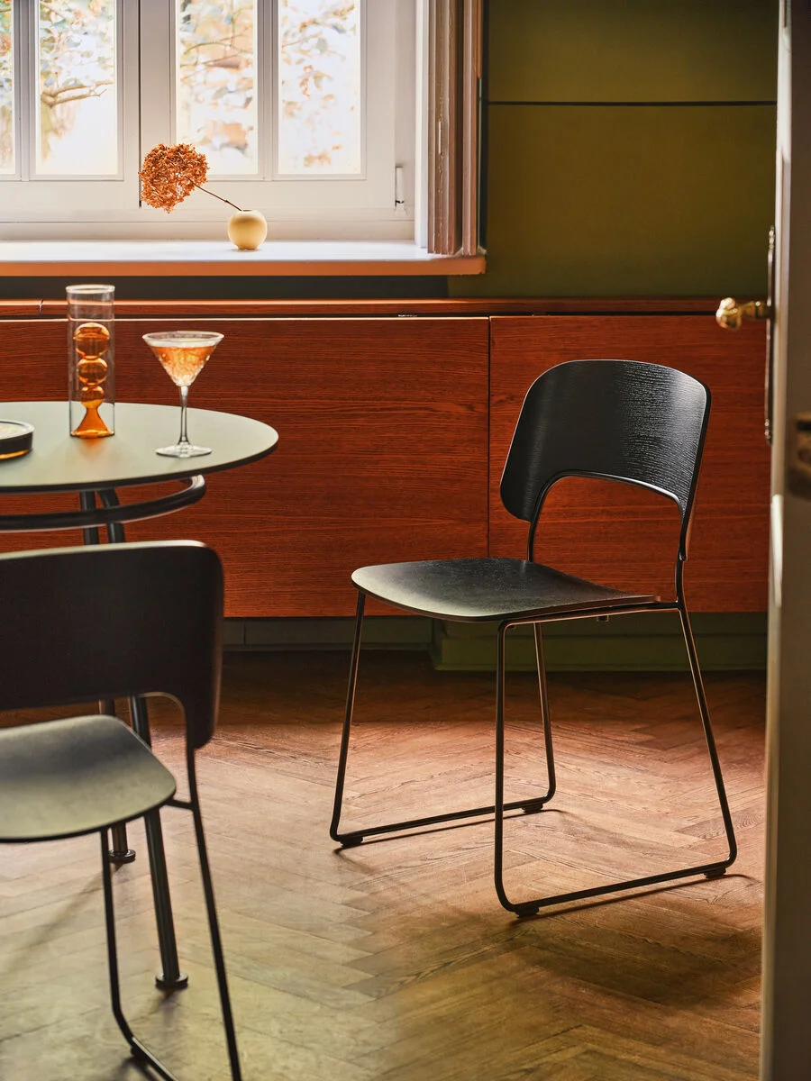 Krzesło AFI zaprojektowane zostało z dbałością o szczegóły i wykonane z najlepszym kunsztem. Jego uniwersalność i adaptacyjność do specyfiki otoczenia sprawia, że sprawdzi się ono zarówno do aranżacji hoteli, ośrodków medycznych, restauracji, biur, jak również przestrzeni mieszkalnych i publicznych. Oparcie zostało zaprojektowane z myślą o wygodzie, zapewniając stabilną pozycję siedzącą. Malowane proszkowo czarne matowe wykończenie ramy pomaga AFI dopasować się do wnętrza i podkreśla jego wyjątkowy kształt. Siedzisko i oparcie wykonane są ze sklejki fornirowej dostępnej w dwóch stonowanych odcieniach dębu. AFI przekazuje koncepcję minimalizmu wspartego wysokiej jakości materiałami, co podkreśla nawiązanie do skandynawskiego designu.