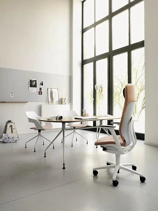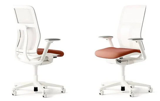 Nowoczesna estetyka AT wyznacza również nowy standard w krzesłach biurowych. Wszystkie punkty przejścia zostały starannie wymodelowane z dbałością o szczegóły, dzięki czemu ramka wygląda organicznie. Wybór bieli dla elementów siedziska i oparcia oraz ramy zwiększa wybór projektów dla różnych środowisk i wyczarowuje szczególnie świeży wygląd o niemal domowym wyglądzie.