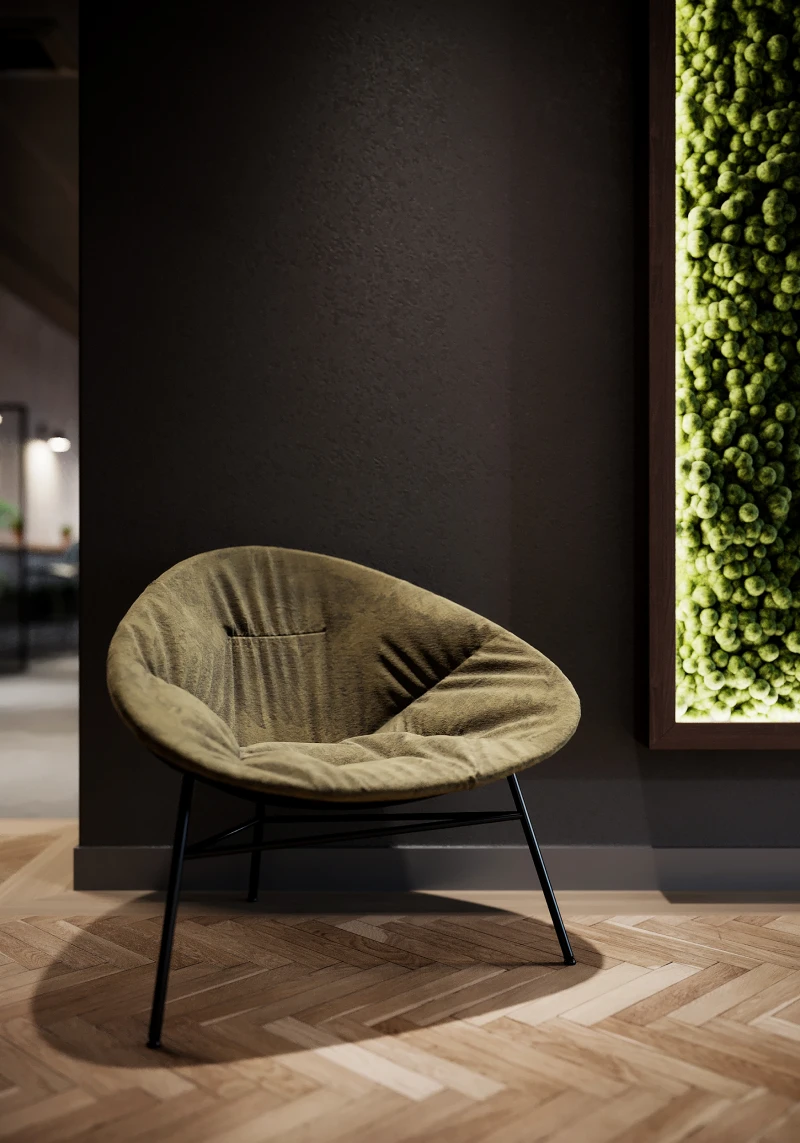 Fotel Chelsea wyróżnia się głębokim, miękko tapicerowanym siedziskiem, które zapewnia maksymalny relaks i wygodę. Jego charakterystyczna, obła forma osadzona jest na smukłej, trójnożnej metalowej podstawie, nadającej mu lekkości i nowoczesnego stylu. Dostępny w bogatej palecie luksusowych tkanin i ciepłych kolorów, idealnie komponuje się zarówno z wnętrzami mieszkalnymi, jak i biurowymi.