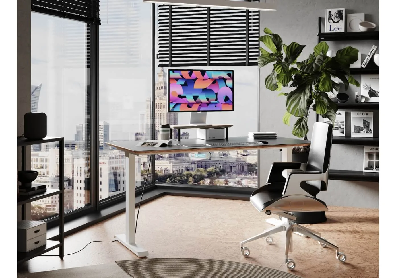 Deskwise to wysokiej klasy meble, zwiększające ergonomię w miejscu pracy. To przede wszystkim biurka z elektryczną regulacją wysokości, umożliwiającą szybką i elastyczną zmianę pozycji – z siedzącej na stojącą. System podnoszenia jest płynny i cichy, posiada też funkcję pamięci pozycji, która pozwala zmienić wysokość biurka za jednym kliknięciem. Dostępnych jest kilka rodzajów blatów od laminowanych, przez matowe wykonane z PerfectSense odporne na odciski palców aż po te wykonane z litego drewna.