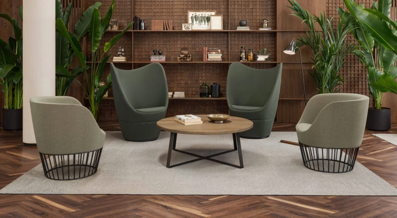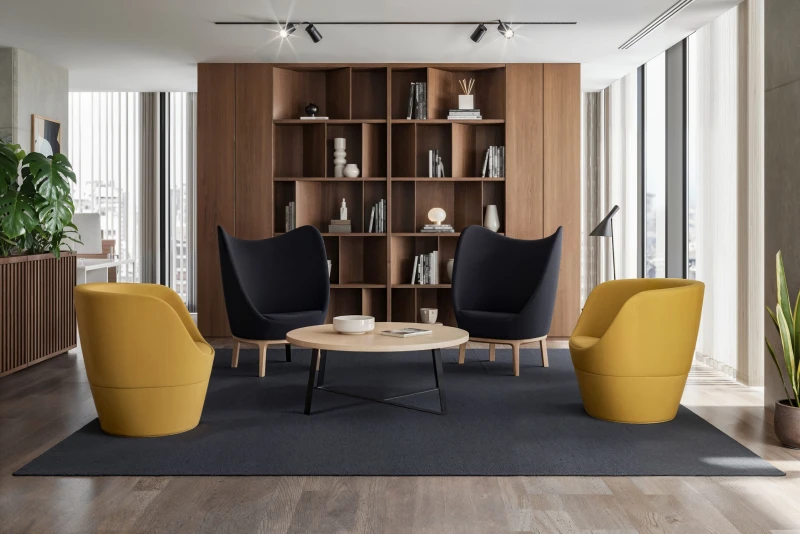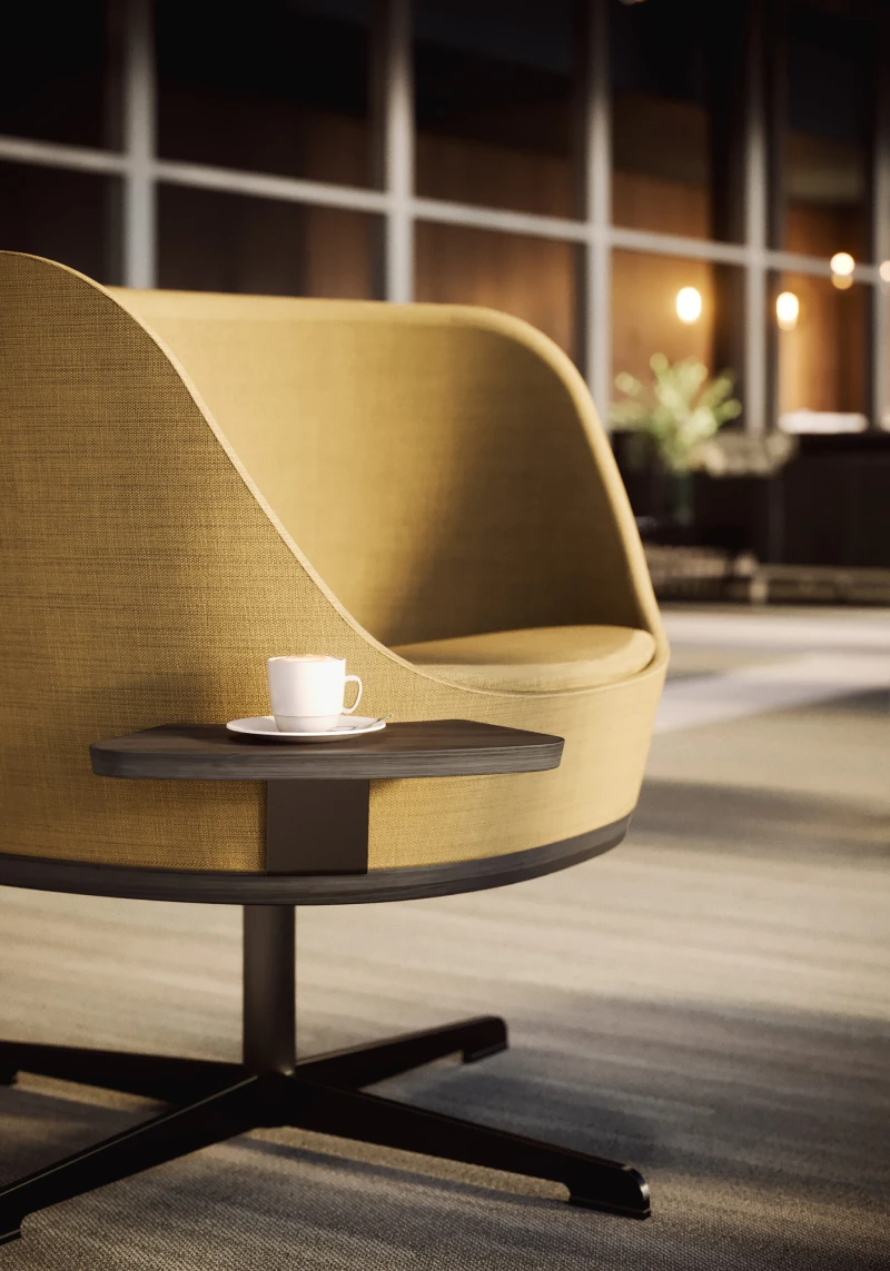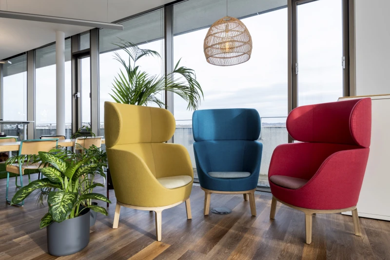 Kolekcja Dixi łączy wyrazisty design z funkcjonalnością, tworząc przestrzeń do relaksu i prywatności w otwartych wnętrzach. W pełni tapicerowane, dostępne w szerokiej gamie tkanin i opcjach dwukolorowego obicia, oferują różne warianty podstaw – od obrotowych po drewniane.
