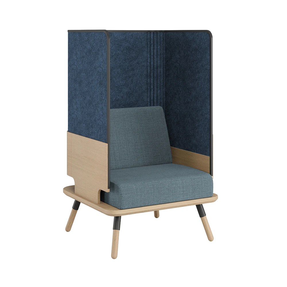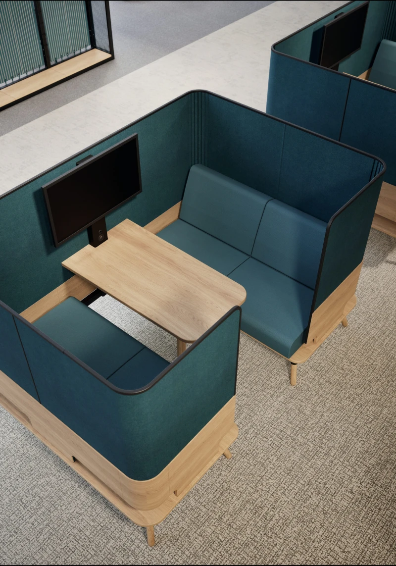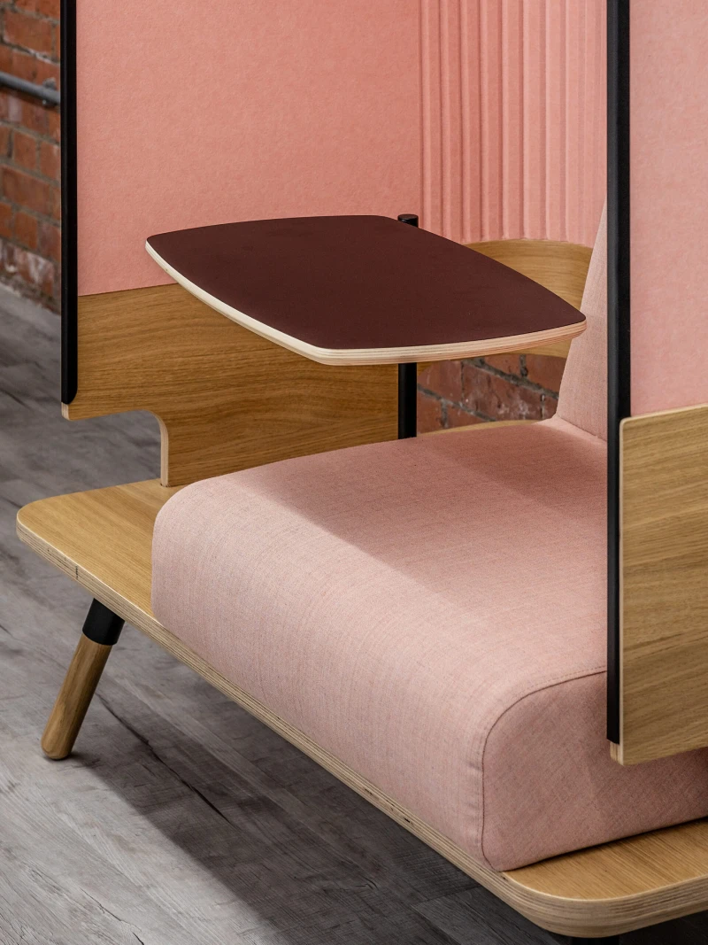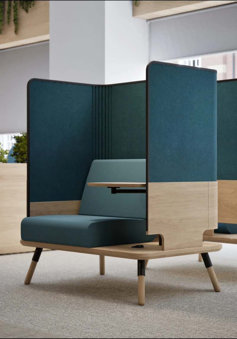 System siedzisk Drift został zaprojektowany z myślą o skupionej pracy i współpracy, oferując akustyczną oraz wizualną prywatność. Wysokie oparcie wykonane z filcu PET, pochodzącego w 50% z recyklingu butelek, skutecznie tłumi hałas i tworzy komfortową przestrzeń. Ekologiczne materiały, solidna dębowa podstawa oraz opcjonalny panel multimedialny sprawiają, że Drift to idealne rozwiązanie do nowoczesnych biur i stref relaksu.