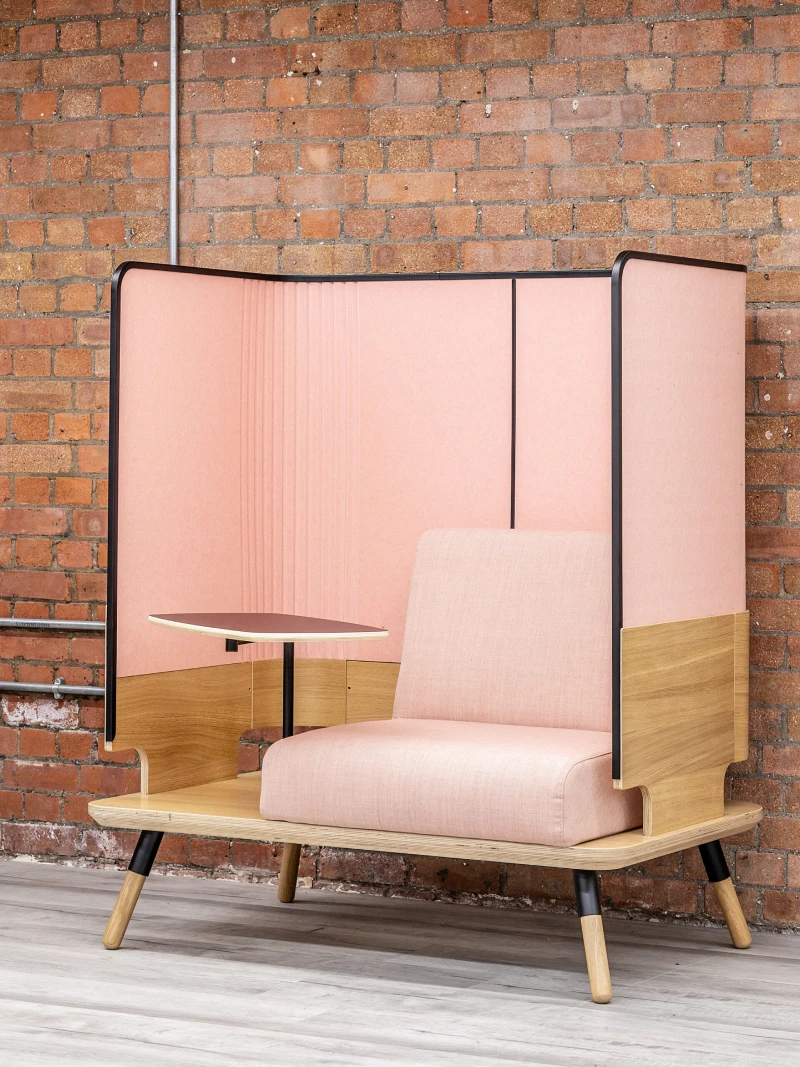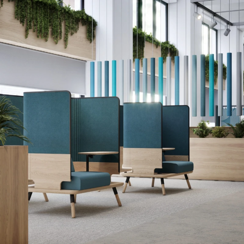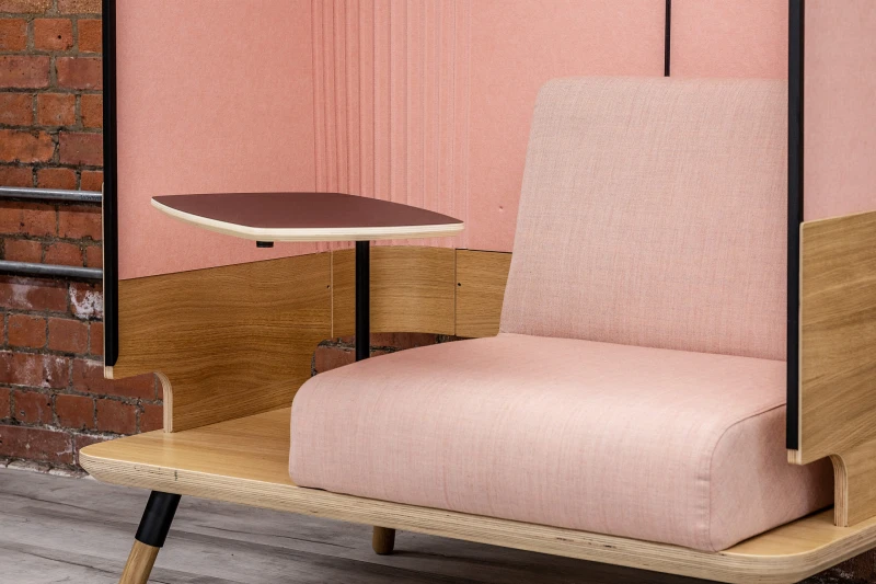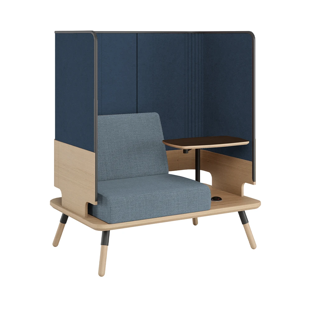 System siedzisk Drift został zaprojektowany z myślą o skupionej pracy i współpracy, oferując akustyczną oraz wizualną prywatność. Wysokie oparcie wykonane z filcu PET, pochodzącego w 50% z recyklingu butelek, skutecznie tłumi hałas i tworzy komfortową przestrzeń. Ekologiczne materiały, solidna dębowa podstawa oraz opcjonalny panel multimedialny sprawiają, że Drift to idealne rozwiązanie do nowoczesnych biur i stref relaksu.