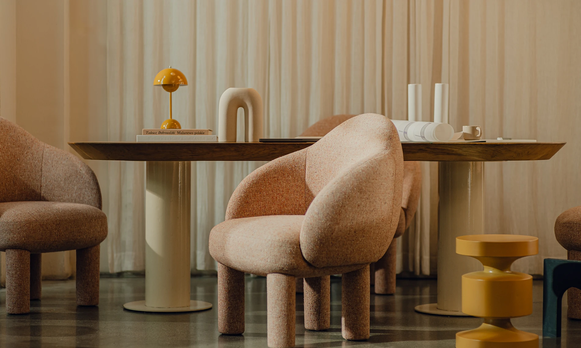 W Zaprojektowane z myślą o komforcie, idealny na długie rozmowy z bliskimi przy stole. Dzięki charakterystycznej, przyjaznej formie idealnie sprawdzi się w hotelowym pokoju, w domowej jadalni, ale i również przy konferencyjnym stole. Jego charakter buduje minimalistyczna, obła, obiecująca komfort forma. Ten fotel to spójna, masywna bryła odporna na upływ czasu.