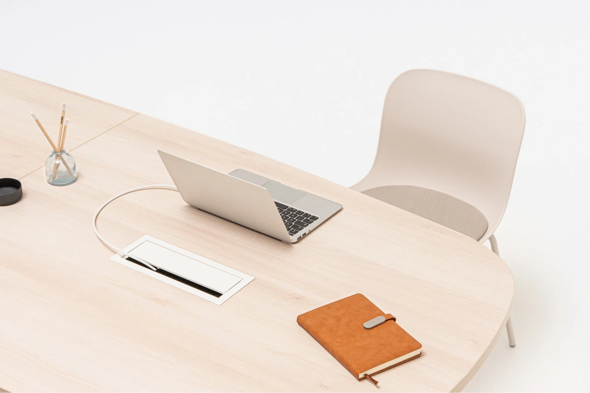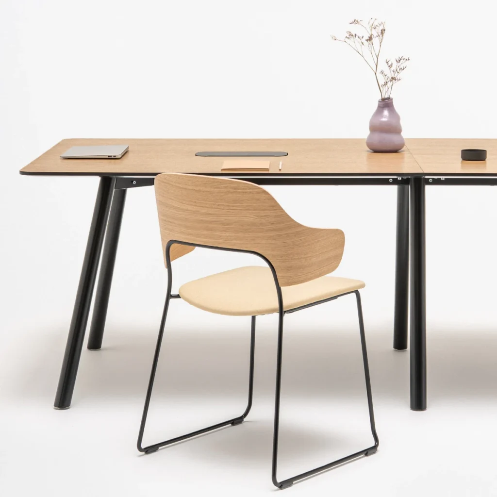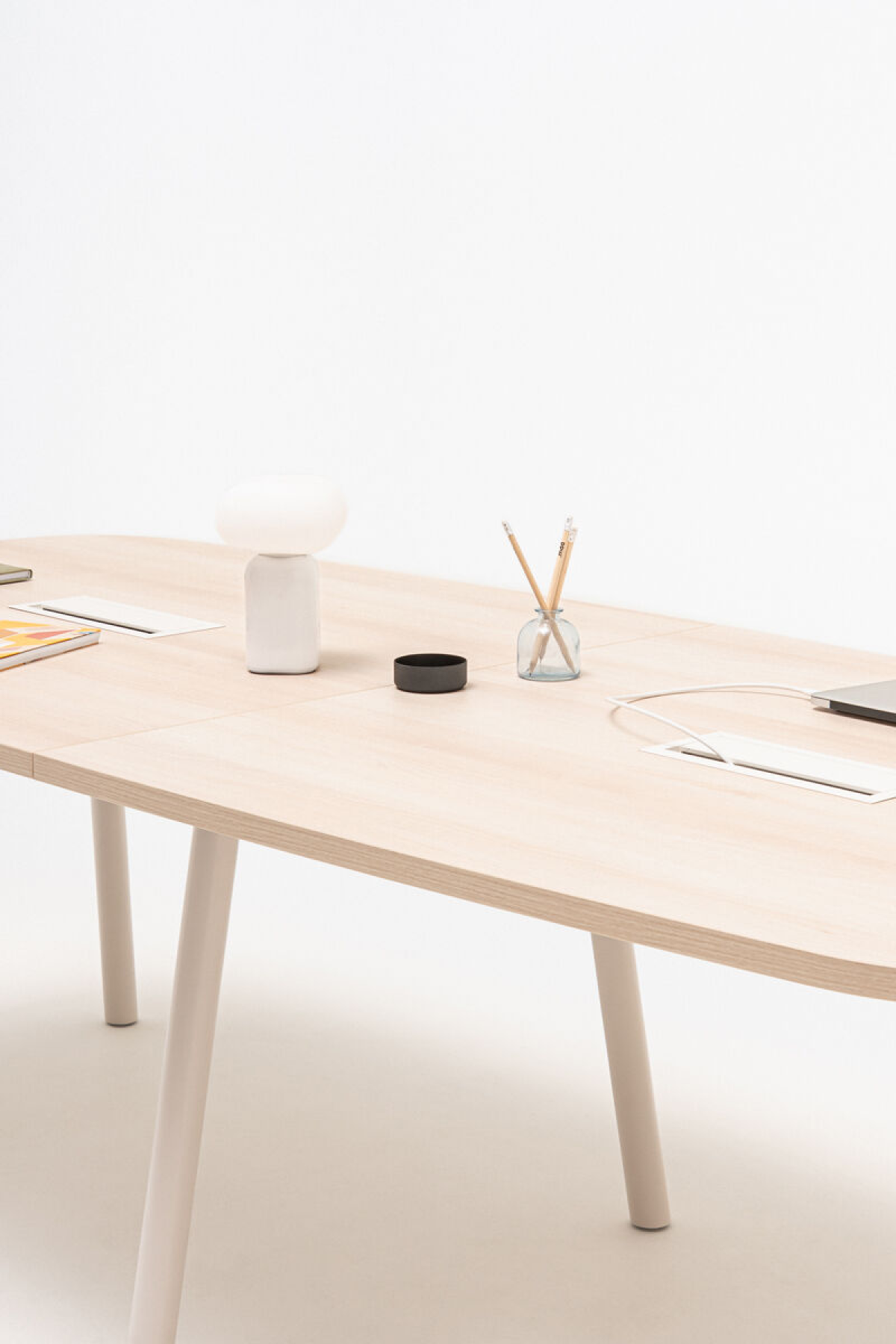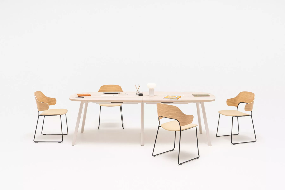 Stoły konferencyjne Echo łączą prostą formę z elastyczną konfiguracją i gotowością na intensywną, zespołową pracę.