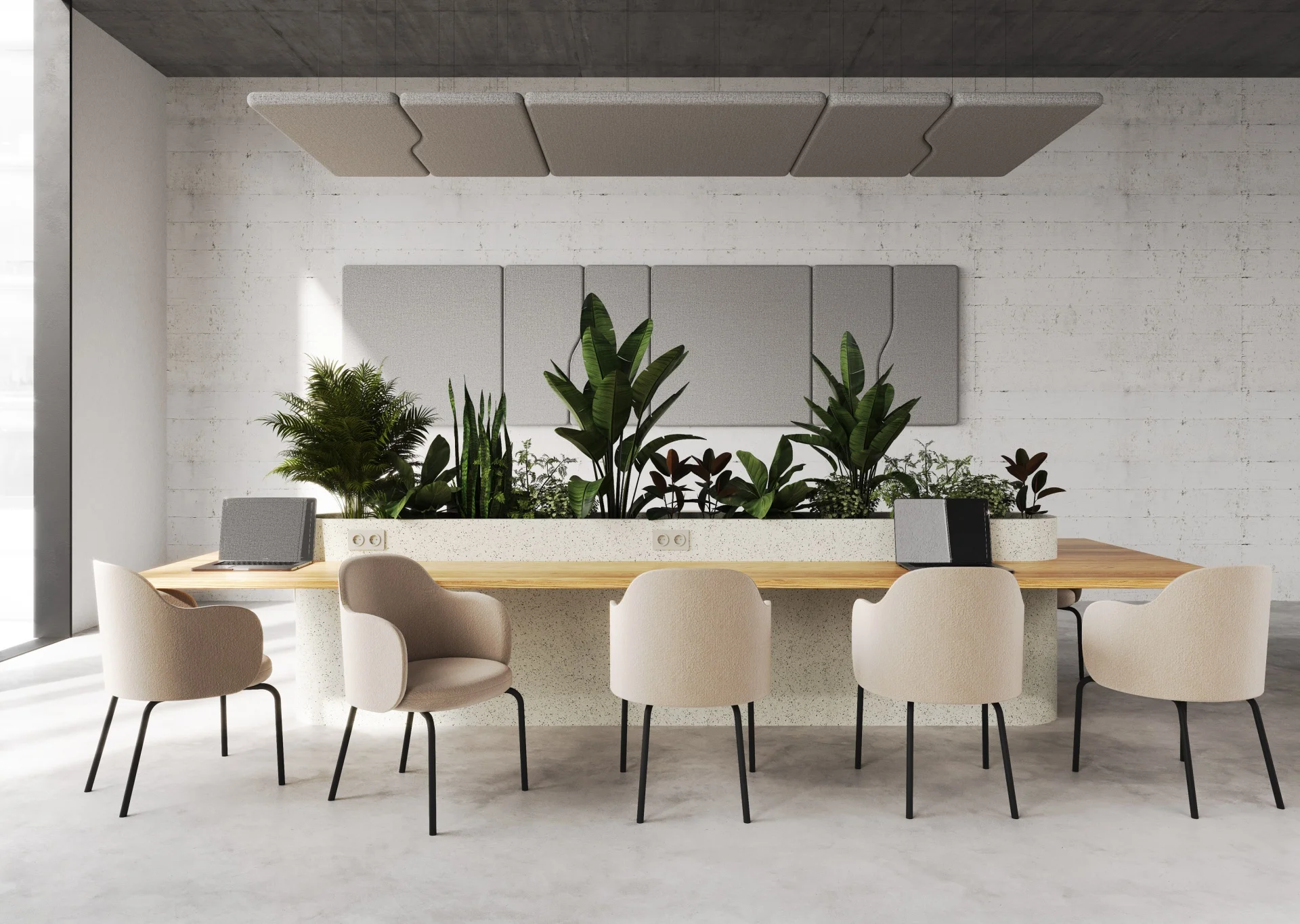 Inspiracją flos do stworzenia kolekcji było holistyczne połączenie elementów, które wyrażają spokój, harmonię i tworzą atmosferę sprzyjającą budowaniu dobrych relacji międzyludzkich. Meble i wielofunkcyjne ekrany akustyczne Flos zostały zaprojektowane z myślą o idei udomowienia przestrzeni pracy i wypoczynku. Wolnostojące ekrany akustyczne pełnią trzy funkcje: praktyczną (oddzielającą przestrzeń), akustyczną (wygłuszającą), a także estetyczną. Harmonijna linia formy nawiązująca do pozostałych elementów kolekcji pozwala tworzyć spójne układy kompozycyjne, kreując intymną przestrzeń.