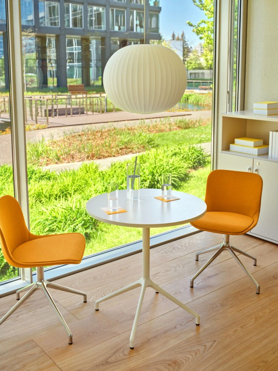 Smukła aluminiowa podstawa nadaje mu lekkości, a prosta forma gwarantuje ponadczasowy charakter. W wersji niskiej idealnie sprawdzi się w strefach lounge i poczekalniach, a wysoka wersja z czteroramienną podstawą to doskonały wybór do kantyn, barów i przestrzeni jadalnianych. Wykonany z trwałych materiałów, pasuje zarówno do klasycznych, jak i nowoczesnych aranżacji. Dostępny w starannie dobranej palecie kolorów, może subtelnie ożywić wnętrze lub je uzupełnić. Łatwo pozwala się on dopasować do aranżacji w różnych stylach i przeznaczeniach.