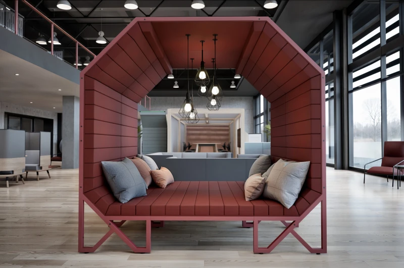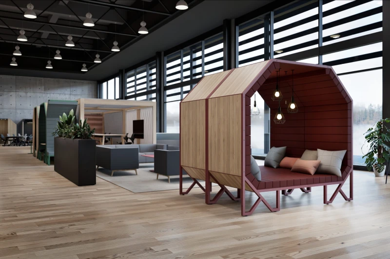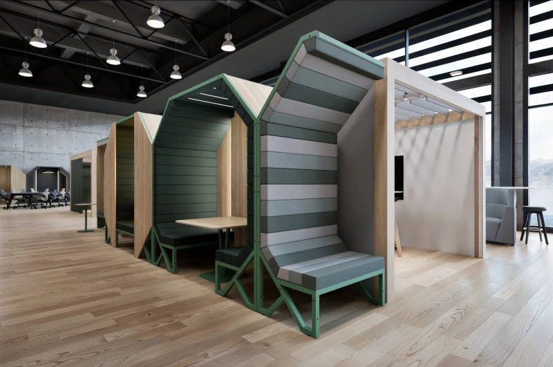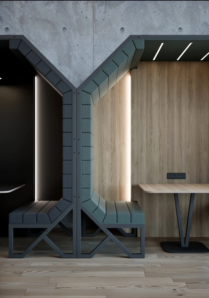 Dzięki jednemu centralnemu modułowi ONE pozwala na elastyczne aranżacje, które można modyfikować w czasie. Personalizacja odgrywa kluczową rolę – dostępne są różne warianty stołów, oświetlenia oraz tapicerki, w tym opcje jednokolorowe, wielopozycyjne i trójkolorowe. Stalowa rama w trzech kolorach, szeroki wybór wykończeń oraz moduł multimedialny zintegrowany z zasilaniem sprawiają, że ONE idealnie wpisuje się w nowoczesne przestrzenie biurowe i wspólne.