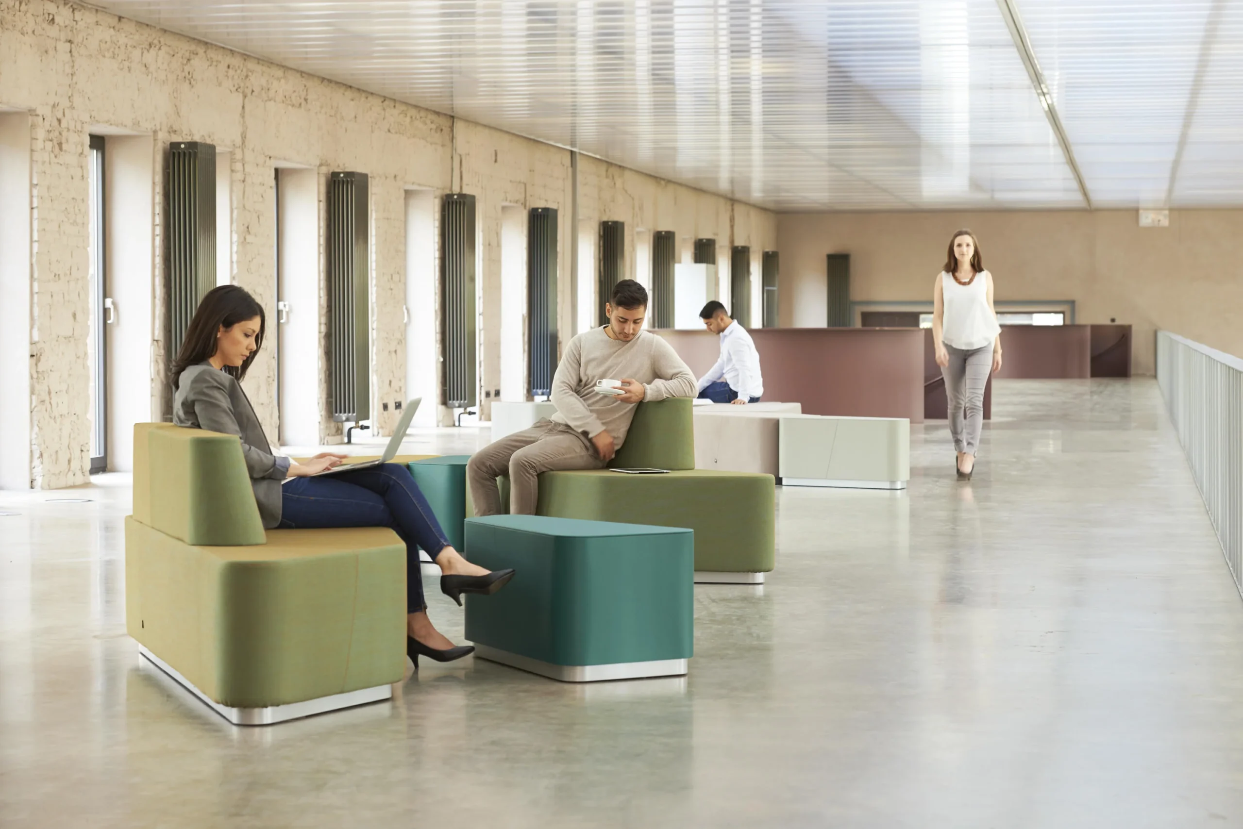 Organic Office to modułowy system mebli wypoczynkowych z wieloma konfigurowalnymi elementami.
