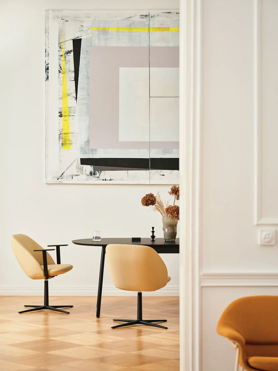 Proste linie siedziska kontrastują z surowością nowoczesnej metalowej podstawy w kilku wersjach. Jednocześnie, jego oparcie umożliwia personalizację; zależnie od preferencji, może być niskie jak u krzesła, lub wyższe, typowe dla foteli biurowych. Możliwości personalizacji zwiększają też opcjonalne podłokietniki, dostępne w ponadczasowym wykończeniu drewnianym. Z tyloma opcjami, Paralel staje się namiastką podróży po równoległych światach, ale we wszystkich wersjach będzie doskonałym dopełnieniem gabinetu lub biura.