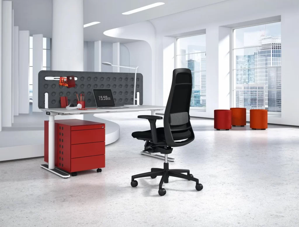 Siedzimy częściej niż kiedyś. To dlatego, że wiele zawodów wymaga skoncentrowanej pracy przy biurku. Co więc możemy zrobić, aby zapewnić sobie zdrowie i mobilność w dłuższej perspektywie? Odpowiednie krzesło może być tutaj niezwykle pomocne. TENSA.NEXT umożliwia trójwymiarowe siedzenie z ruchem we wszystkich kierunkach. Siedzisko i kubełek oparcia wykonane w 100% z materiału PET pochodzącego z recyklingu. Mechanizm synchroniczny oraz regulowana głębokość i nachylenie siedziska optymalizują sekwencję ruchów i zachęcają do wyprostowanej pozycji siedzącej. Ergonomiczne kontury oparcia i indywidualnie regulowana nadmuchiwana poduszka lędźwiowa zapewniają doskonałe podparcie, szczególnie w dolnej części pleców.